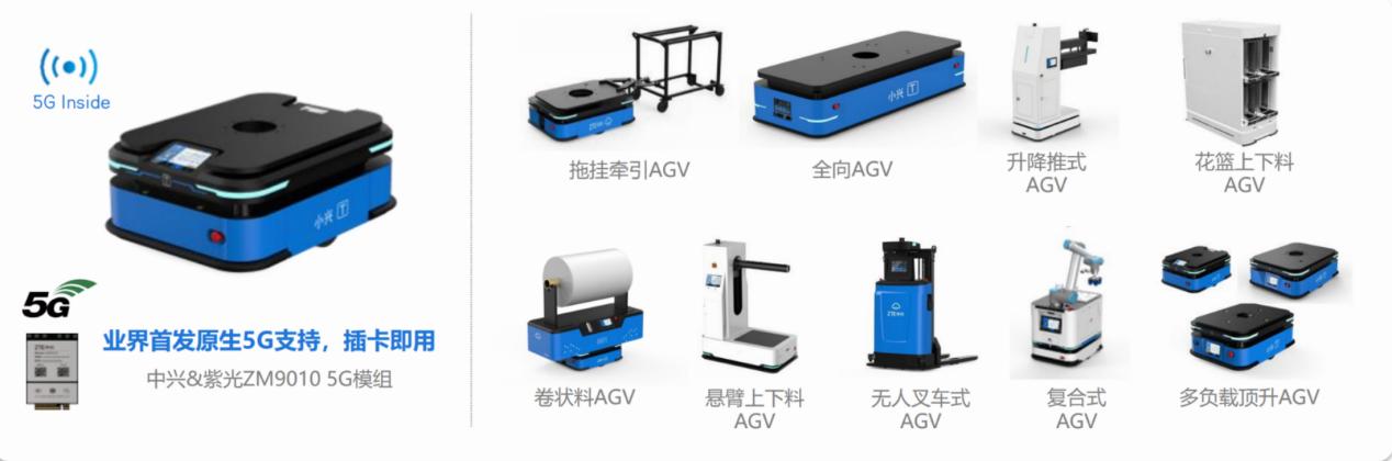 自2021年起,中兴通讯已凭借自身多年的研发优势发布了业内首款内置5G模组的工业自然导航AGV载重平台,潜伏顶升式、辊筒式、拖挂牵引式等多形态的AGV产品以及5G智能堆高无人叉式AGV产品。同时在工业制造领域中,中兴通讯依托自身领先的5G产品和技术,着力打造5G+智能厂区物流解决方案,服务于新能源、电子制造、汽车制造等多个行业。