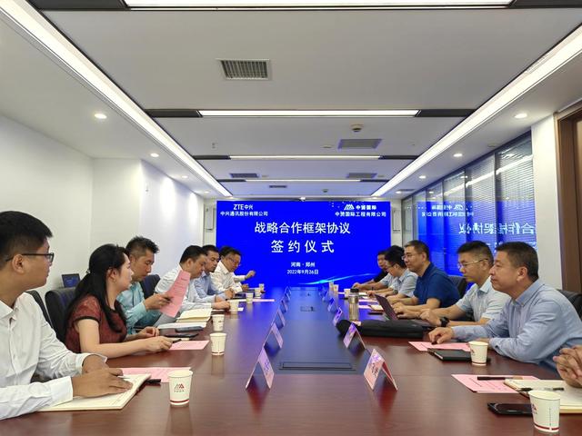 9月26日,中赟国际工程有限公司(以下简称“中赟国际”)与中兴通讯股份有限公司(以下简称“中兴通讯”)战略合作协议签约仪式在河南郑州举行。中赟国际董事长岳建光、副总经理韩永强、副总经理兼总工程师刘庆礼、副总经理刘信生,中兴通讯副总裁杨相松、矿山业务部总经理张超,以及中兴通讯河南分公司CTO李纪欣、新业务总监黄燕等出席签约仪式并座谈交流。