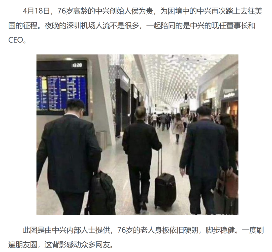 然而,仅仅在侯为贵退休两年后,中兴通讯就经历了一次重大的企业生存危机,也就是众所周知的美国制裁事件。当年4月,美国商务部发布公告称,美国政府将在未来7年内禁止中兴通讯向美国企业购买敏感产品。在经历了一系列博弈后,中兴通讯于当年7月获得解禁。