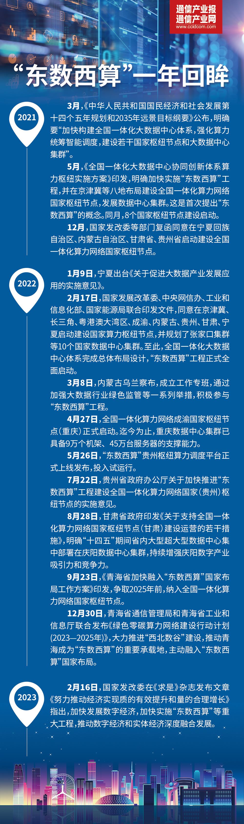 “东数西算”是在ICT深度融合背景下催生出来的系统工程,通过构建数据中心、云计算、大数据一体化的新型算力网络体系,将东部算力需求有序引导到西部,优化数据中心建设布局,促进东西部协同联动,推动数字经济和实体经济深度融合,东西部经济均衡发展。