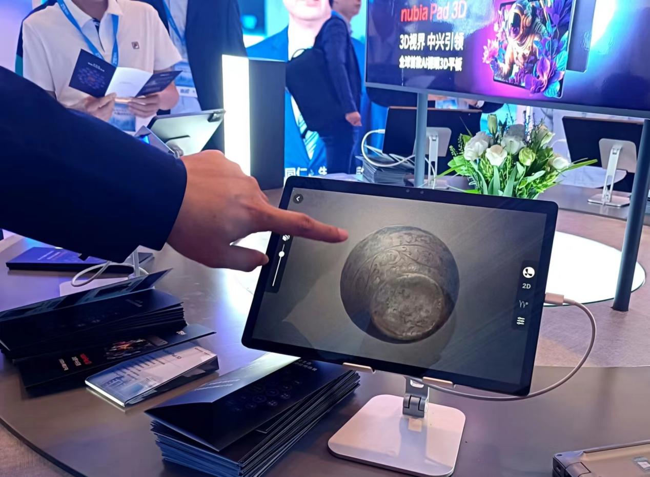 4月12日,在2023年度中兴通讯云网生态峰会上,中兴通讯推出的全球首款AI技术裸眼3D平板吸引了与会人员的关注。