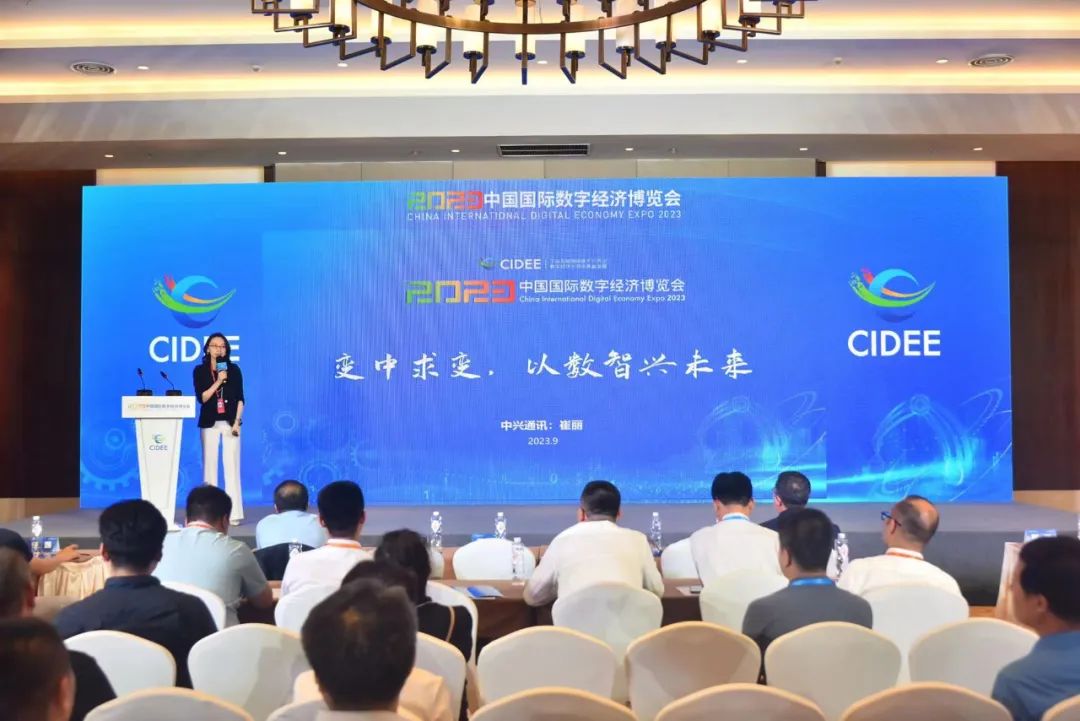 9月5日,2023中国国际数字经济博览会在河北正定举行,中兴通讯首席发展官崔丽受邀在工业互联网创新发展论坛上发表题为《变中求变,以数智兴未来》的主题演讲。