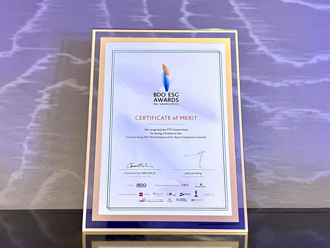 近日,全球第五大会计网络BDO在香港公布了其第五届BDO环境、社会及管治大奖得奖名单,中兴通讯凭借在ESG领域所做的杰出贡献获颁“ESG突出表现大奖— H股公司”。