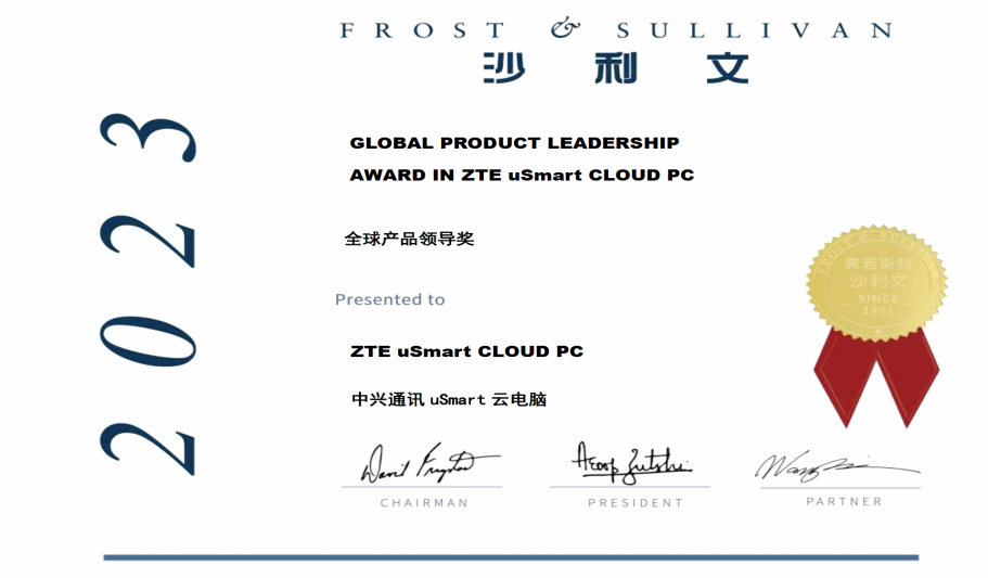 中兴通讯的云电脑终端,与中国移动、中国电信合作形成规模销售,2023 年上半年云电脑实现收入同比翻番,在国内运营商市场销售占比排名第一。值得一提的是,这款产品还被知名市场机构Frost &Sullivan沙利文评选为“2023全球产品领导奖”。未来随着算力不断向边缘下沉,云电脑还有很大的潜力可以挖掘。