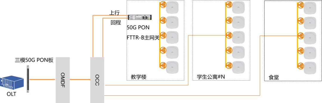 西安医药科技职业学校位于陕西省西安市鄠邑区高新技术产业开发区,前期校园网络存在网络设备老旧、覆盖盲区多、升速困难、智慧化不高等问题,并具有数字化教学、智慧实验室、AR/VR等现代化教学需求。陕西电信作为“光网陕西”领军服务商,不断积极探索新技术、新方案,联合中国电信研究院与中兴通讯,研究制定了“三模50G PON + FTTR-B”全光网解决方案,旨在打造“全光极速、极致体验、极广覆盖、极简部署、极简运维”的高品质数字校园网络,实现整个校园全光万兆一网接入、无线Wi-Fi千兆覆盖,一纤融合接入语音、数据、视频等多业务,满足高校场景下多用户、高并发、大带宽的网络需求,并为AR/VR教学、远程教育等需求提供充足、稳定的带宽保障。