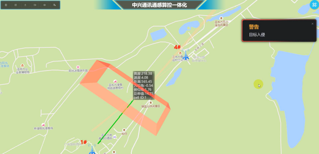 目前黑龙江移动携手中兴通讯完成了黑龙江省首个“通感一体”外场组网测试,结合中国移动自研的凌云管理平台,能实时追踪并预判景区内无人机的运动轨迹、速度和位置并针对入侵无人机进行告警,实现区域内全天候、无死角、高精度的低空安防感知监测,助力亚布力旅游度假区打造一个更加智能化、安全化的智慧旅游新标杆。