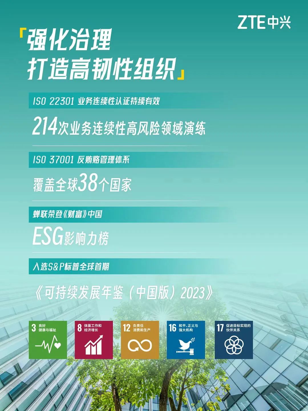 “中兴通讯坚持将可持续发展与ESG理念贯穿公司运营与治理全过程,秉持科技向善,承担起ICT领军企业的责任与担当,弥合数字鸿沟,让沟通与信任无处不在。”中兴通讯执行副总裁、首席运营官谢峻石在报告中表示。