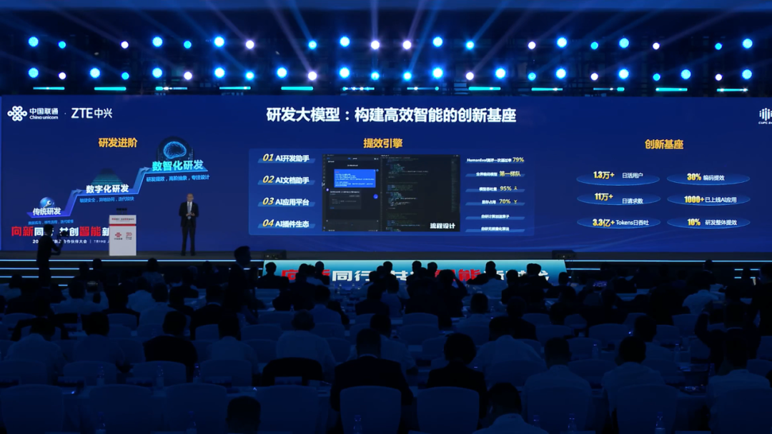 演讲中,徐子阳侧重分享了中兴通讯的领域模型构建和落地实践历程,并聚焦三个关键领域—研发大模型、通信大模型以及行业大模型做了详细介绍。