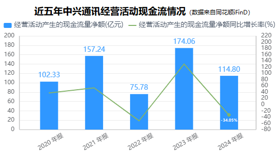 随着2024年年度报告的披露,中兴通讯交出了近六年最差的业绩成绩单——2024年公司营收利润双降,核心业务运营商网络业务营收同比大幅下降15.02%;现金流恶化,经营活动现金流量净额同比大幅下降34.05%;研发投入缩减,研发费用同比减少4.97%,研发人员锐减2209人。