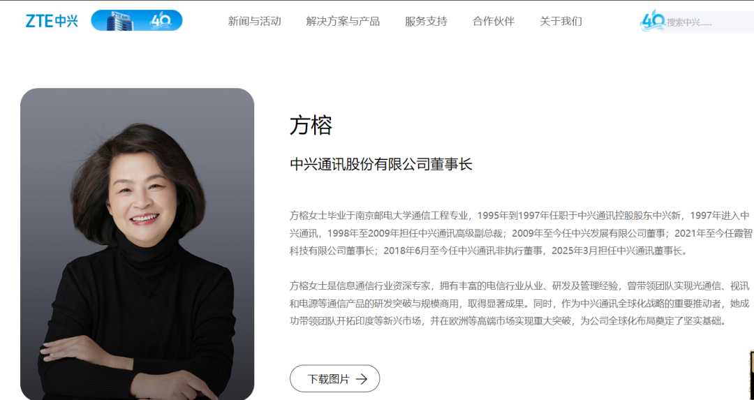 从工作履来看,方榕于1995年加入中兴新,1997年进入中兴通讯,从1998年到2009年担任中兴通讯高级副总裁,2018年之后一直是中兴通讯董事会成员,担任中兴通讯非执行董事,曾带领中兴通讯的团队实现光通信、视讯和电源等通信产品的研发突破及规模化商用,同时,作为中兴通讯全球化战略的重要推动者,带领中兴通讯在印度等新兴市场和欧洲等高端市场取得重大突破。