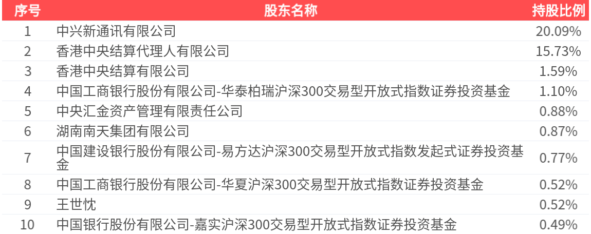 前十大股东持股数量为20.35亿股,占总股本比例为42.55%,前十大股东持股情况如下: