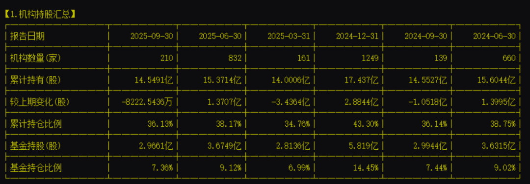 截至三季度, 中兴通讯 仍是机构重仓股之一,约有210家机构持有14.55亿股。但较上一季度,减持约8222万股。
