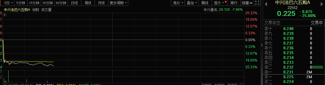 今天一早, 中兴通讯 就刷屏了。其A股暴跌超7%,H股暴跌超8%。中兴法巴六五购A一度暴跌超25%,该品种在本月短短几个交易日内,已经腰斩。