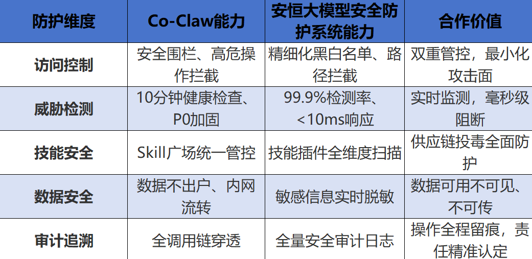 从个人应用的惊艳亮相到企业场景的规模部署,AI正从“信息检索工具”加速演变为具备闭环能力的“行动引擎”。中兴通讯推出的Co-Claw企业级AI数字员工平台,已在研发、财务、运维等核心场景规模化落地,成为员工日常工作的“数字助理”。为更好助力这一前沿平台的安全应用,安恒深度结合Co-Claw的业务场景,双方正联合探索打造AI Bot防护的标杆案例。