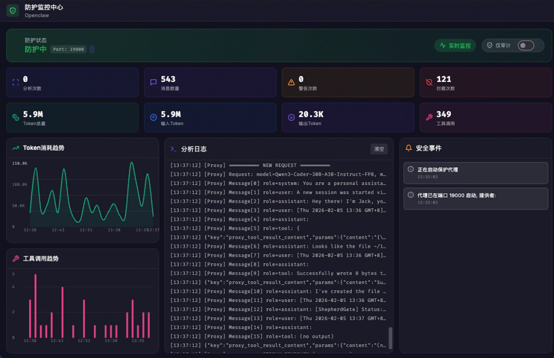 防线:大模型安全防护系统实时监测工具调用,结合上下文意图分析,精准识别行为偏离风险,阻止敏感信息外发,保障数据安全