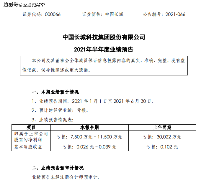 集微网消息,7月14日,中国长城发布2021年半年度业绩预告显示,上半年预计亏损7500-11500万元,去年同期亏损30022万元,相较去年,亏损状况有所减轻。