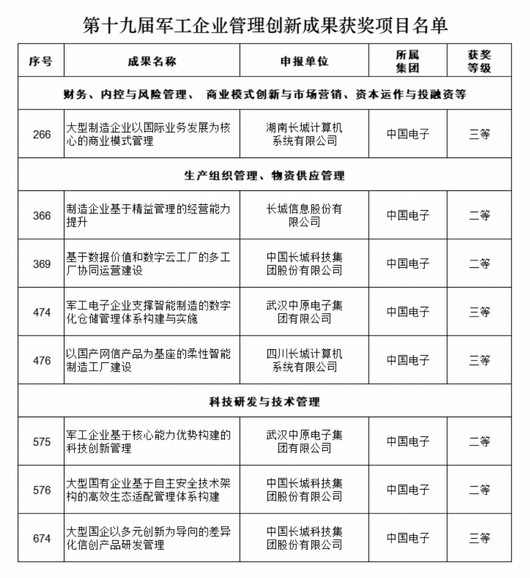近日,中国国防工业企业协会发布了第十九届军工企业管理创新成果获奖名单。中国长城及所属企业申报的四项创新成果荣获二等奖,四项创新成果荣获三等奖。