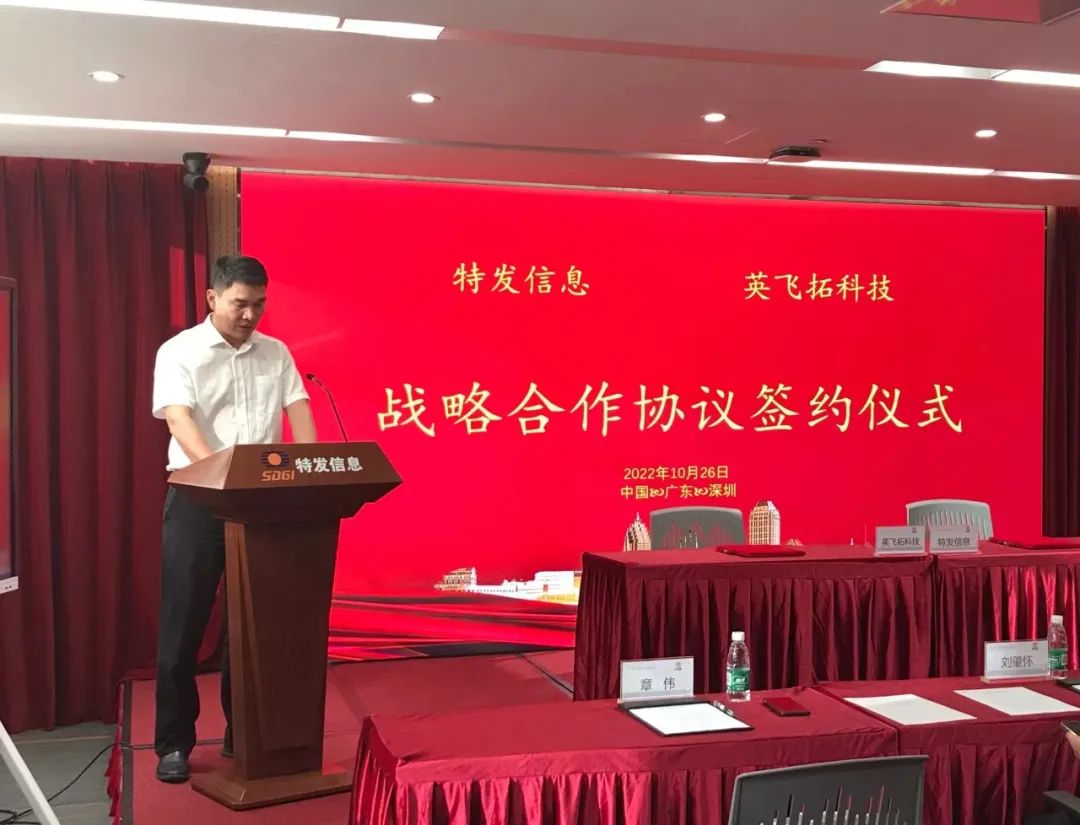 英飞拓总经理章伟表示,特发信息是国内最早开拓并专注于光纤光缆、配线网络设备及通信设备研发、生产的国家级高新技术企业,近年来更是构筑了光通信、智能接入、军工和智慧服务融合的多元化产业格局。英飞拓期待未来与特发信息开展深度合作,坚持落实创新发展数字经济产业,共同服务于城市数字化转型发展。通过此次合作,双方在建立友好伙伴关系的基础上,也将携手探索国企联动、行业创新、共促发展的新模式。