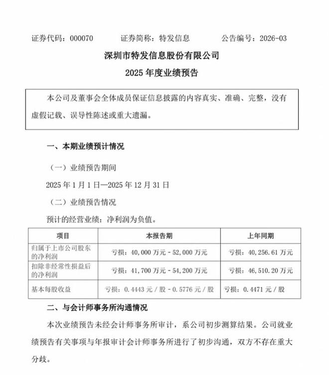 值得注意的是,这是特发信息继2023年亏损2.72亿元、2024年亏损4.03亿元后,连续第三个会计年度出现亏损,且亏损规模呈明显扩大趋势,三年累计亏损额将超10.75亿元。