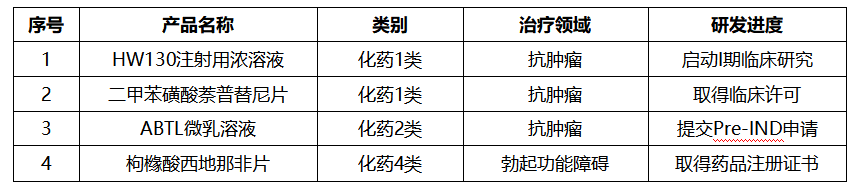 报告期内在研产品情况: