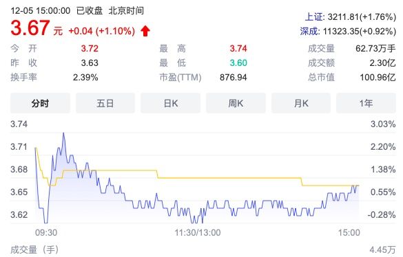 ▲海王生物5日收报3.67元/股,总市值100.96亿元