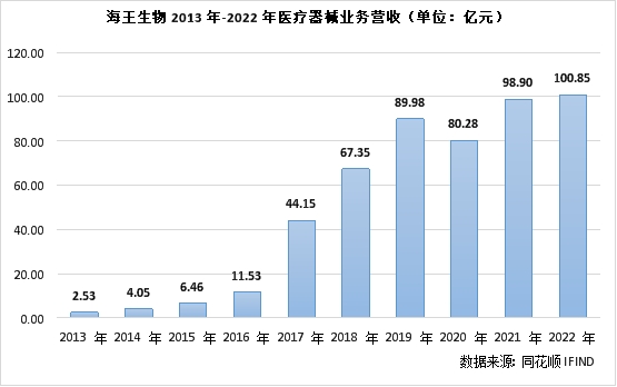从业务规模来看,近9年来海王生物医疗器械业务整体持续增长,从2013年的约2.87亿元增长至2022年的约 100.85 亿元,增长近40倍,收入占比提升至26.65%,合作的上游厂家以外资企业居多,如波士顿科学、强生、西门子等外资厂商,也有部分国产替代产品。