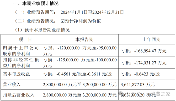 1月22日,深圳市海王生物工程股份有限公司(000078.SZ,以下简称:海王生物)发布公告,预计2024年度营业收入为280亿至320亿元,归母净利润为亏损9.5亿至12亿元,扣非净利润为亏损10亿至12.5亿元,基本每股收益为亏损0.3611至0.4561元/股。
