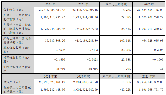 海王生物近3年连续亏损。2022年至2024年,归属于上市公司股东的净利润分别为-10.27亿元、-16.90亿元、-11.93亿元,归属于上市公司股东的扣除非经常性损益的净利润分别为-10.99亿元、-17.40亿元、-12.38亿元。