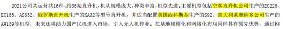 此外,风云君还发现,中信海直2021年年报的85架直升机,没有一架是国产的。