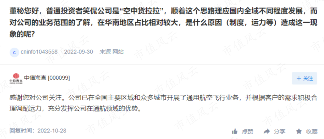 中信海直对自己了如指掌的能力,很不像某些上市公司,张口就是明年利润5个亿,再问就是10个亿,报表一出来亏20亿。