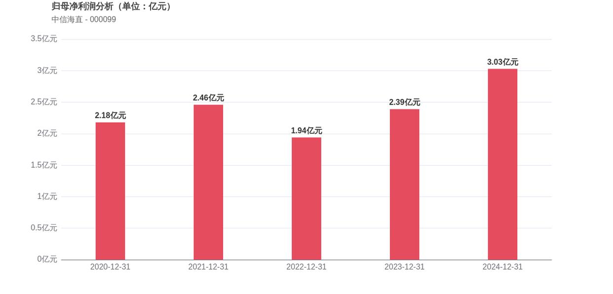 利润角度分析,2020年中信海直实现归母净利润2.18亿元,2024年3.03亿元。公司盈利能力在波动中整体向好,2024年归母净利润同比增长26.81%。