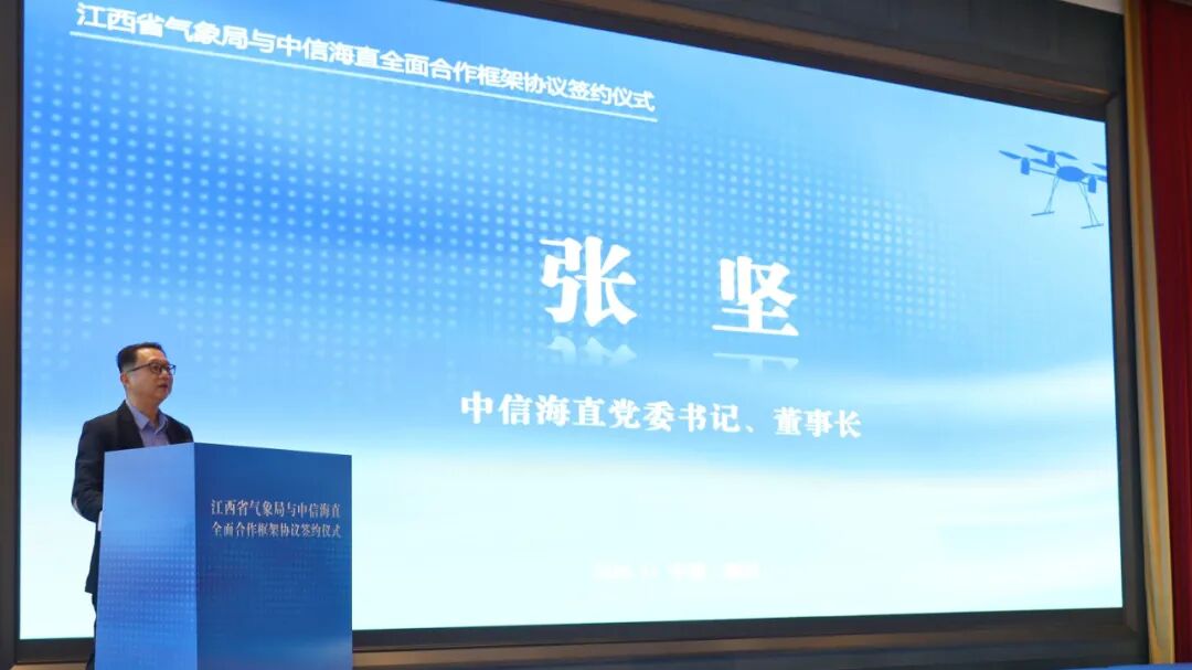 签约仪式上,张坚宣布大型无人机江西人工增雨作业首飞。由中信海直所属子公司海直通航运营的一架双尾蝎A人工影响天气型无人机从江西抚州南城机场腾空而起,成功完成首飞。这标志着中信海直在低空经济领域的战略布局再落关键一子。