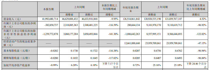 10月24日傍晚,TCL科技发布了2022年第三季度报告。报告期内TCL科技实现营收419.92亿元,较去年同期同比下降9.95%;实现归母净利润亏损3.82亿元,较去年同期同比下降116.59%。