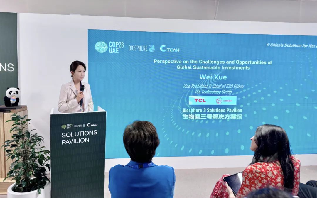 2023年COP28联合国气候大会,TCL科技副总裁、ESG工作委员会主任魏雪分享了TCL应对气候变化的策略及实现可持续发展的实践经验,呼吁全人类共同应对气候变化问题