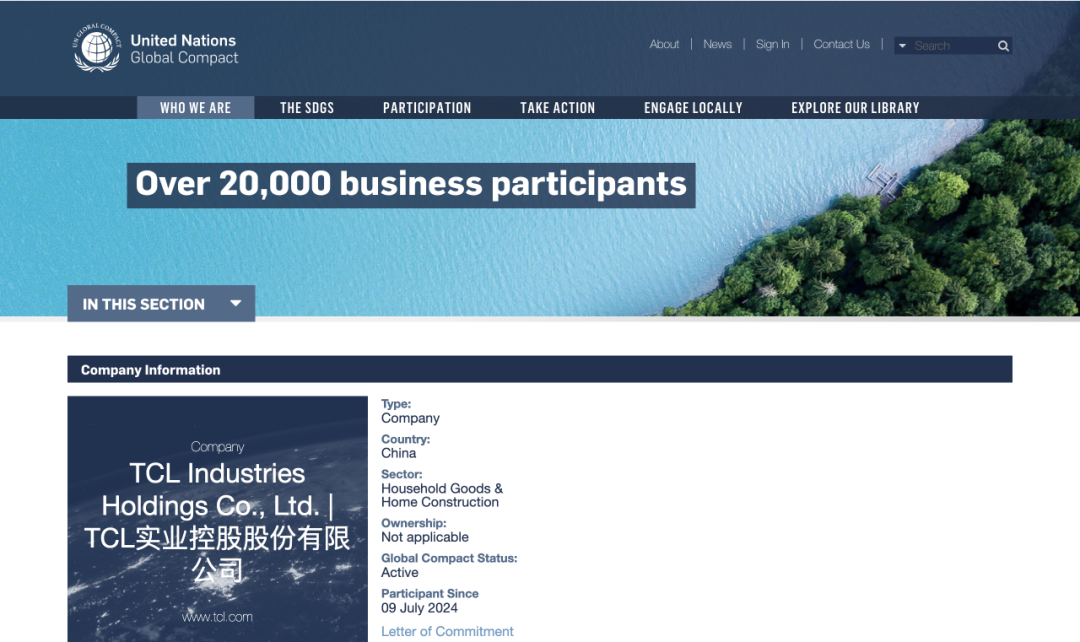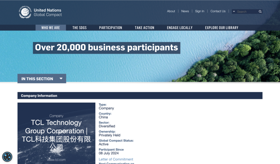 近日,TCL科技、TCL实业正式加入联合国全球契约组织(UNGC),承诺支持联合国全球契约组织关于人权、劳工、环境和反腐败四个领域的《全球契约十项原则》,并且致力于参与促进联合国可持续发展目标的合作项目,为实现联合国目标特别是“可持续发展目标”做出持续贡献。