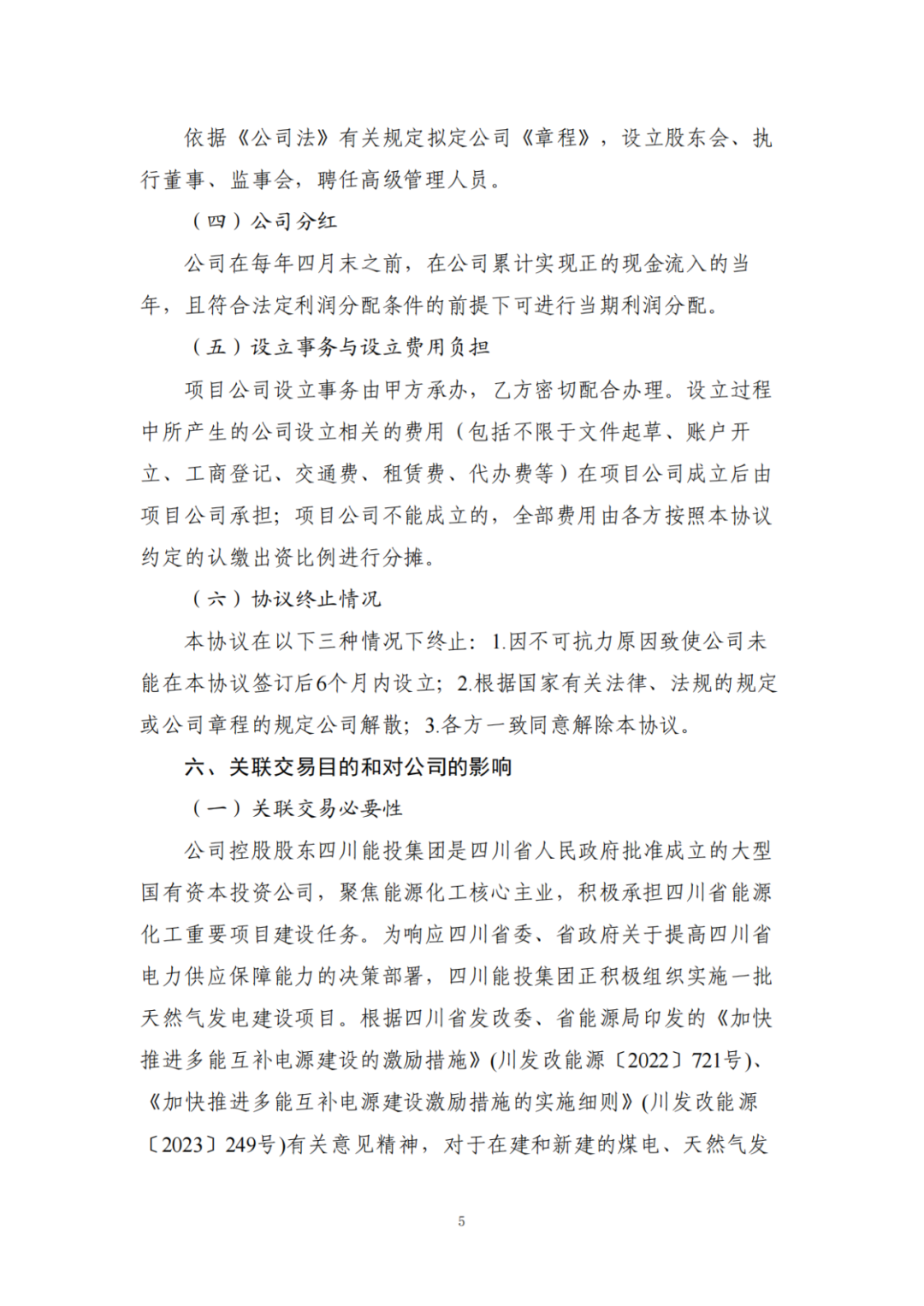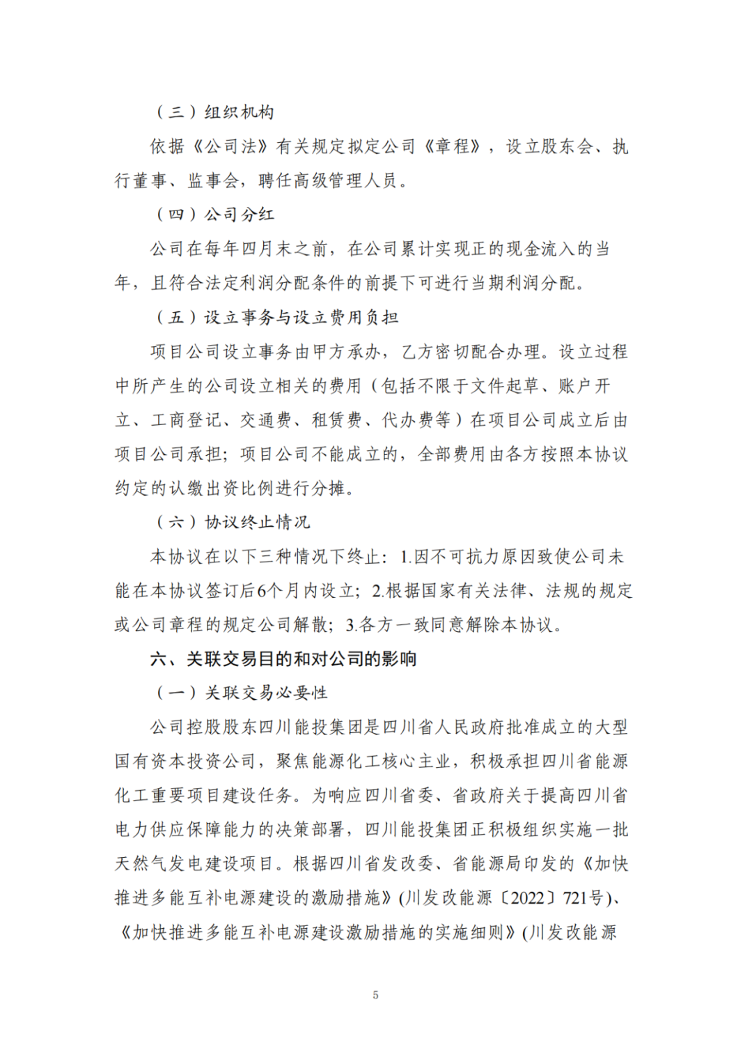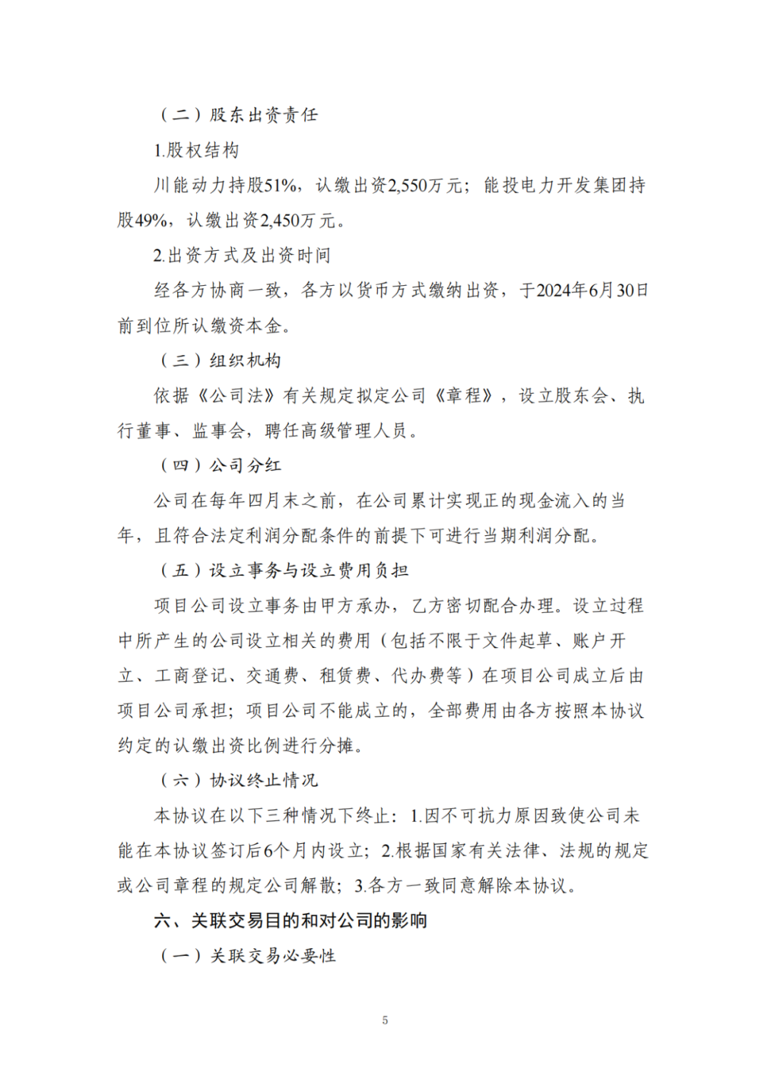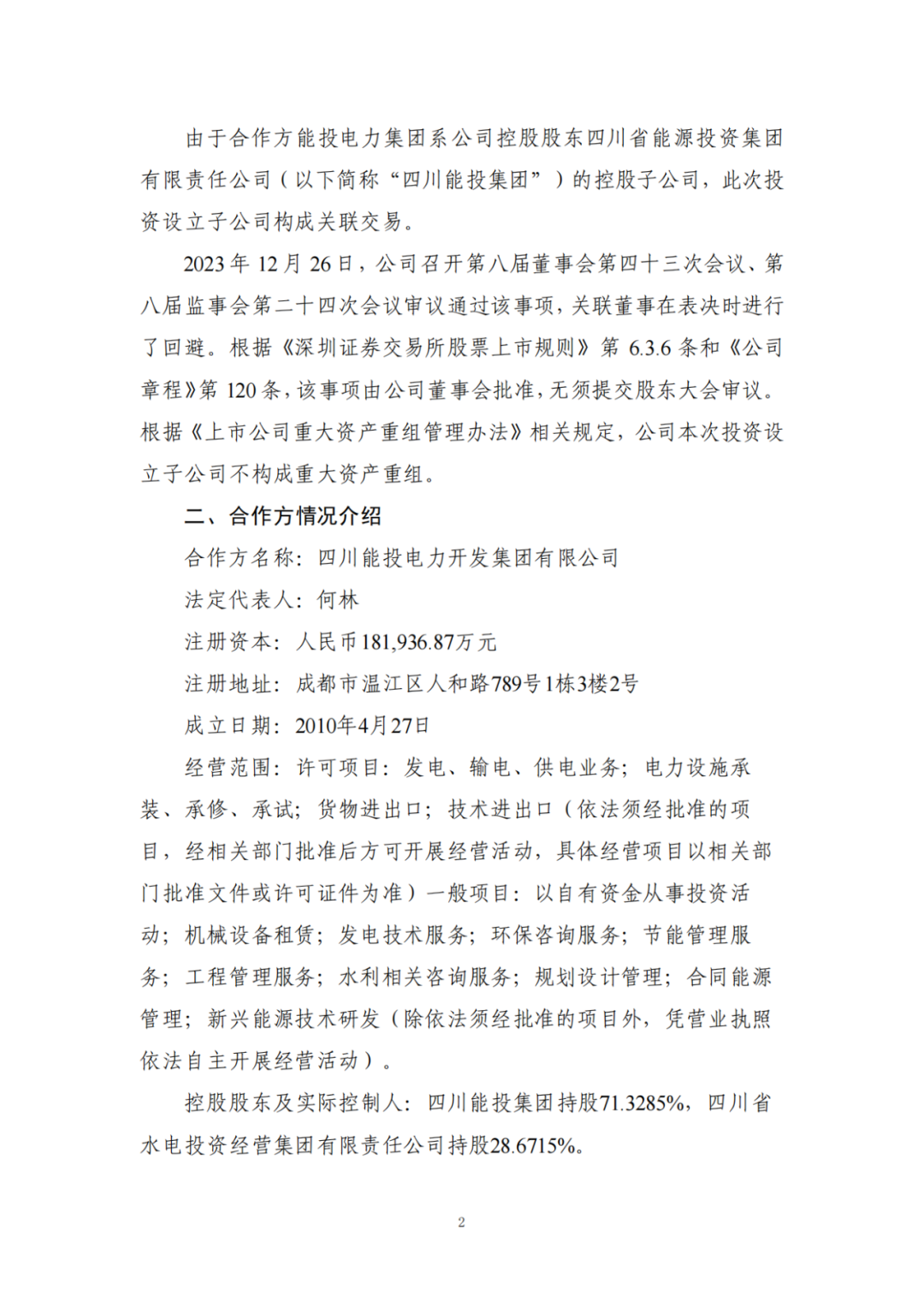川能动力与四川能投广元燃气发电有限公司共同组建四川能投美姑风电开发有限公司(以下简称“美姑风电公司”或“项目公司”),推进四川省凉山州美姑县风电项目(以下简称“美姑风电项目”)开发、投资和建设。其中,川能动力为项目公司控股股东持有51%股权,广元燃气公司持有49%股权。