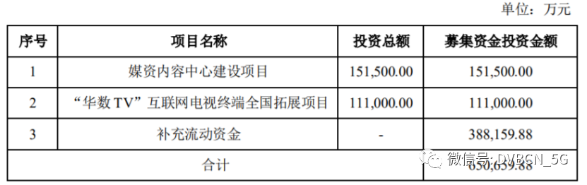 信息显示,在2015年华数传媒曾向特定投资者杭州云溪投资合伙企业(有限合伙)非公开发行286,671,000股A股股票,发行价格为22.80元/股,募集资金总额为人民币653,609.88万元。该次募集资金原先确定主要用于以下投资项目: