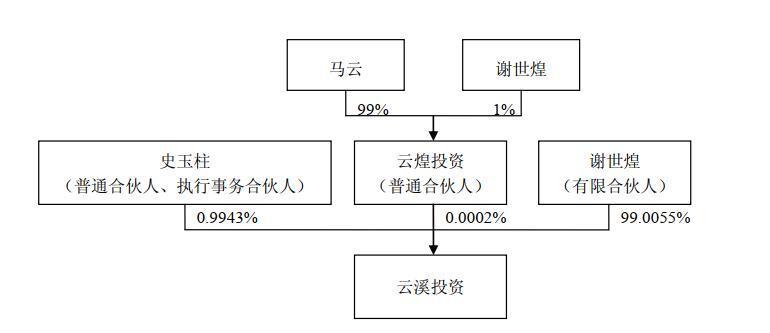 云溪投资来头非小,资料显示,其执行事务合伙人为史玉柱,史玉柱持有0.99358%的合伙份额;普通合伙人杭州云煌投资管理有限公司,持有0.00015%的合伙份额;有限合伙人杭州凯锐文化传媒有限公司,持有99.00627%的合伙份额。杭州云煌投资则是由马云和谢世煌分别持股99%和1%。