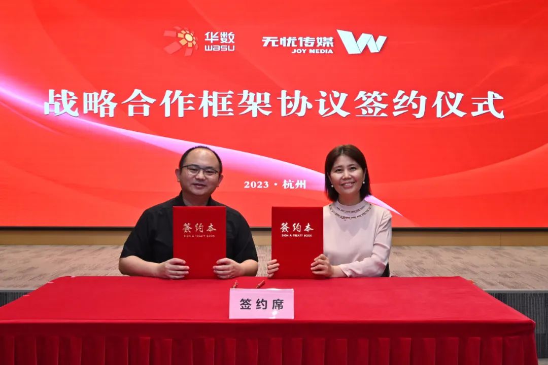 8月8日下午,华数传媒与无忧传媒在华数白马湖园区签署战略合作协议。华数集团党委书记、董事长陆政品和华数传媒有关负责人,无忧传媒创始人、CEO 雷彬艺及主要业务负责人参加活动。