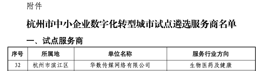 2023年,华数传媒入选“杭州市中小企业数字化转型服务商”。