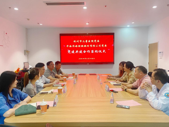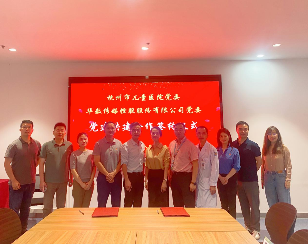 6月19日,华数传媒党委与杭州市儿童医院党委举行党建共建签约仪式,华数传媒党委委员、副总裁许锐和杭州市儿童医院党委委员、纪委书记赵霞代表双方党委签署党建共建合作协议。