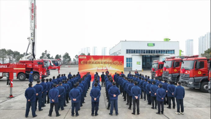 3月1日,湖南湘江新区消防车辆集中交付仪式在中联重科望城工业园举行。此次交付的中联重科消防车共计33台,它们将陆续装备到湘江新区各级消防救援队伍,与“蓝朋友”们并肩战斗,共同守护人民美好生活。
