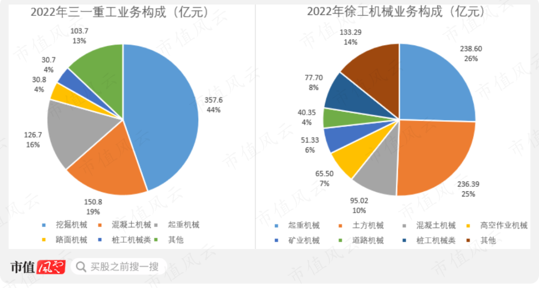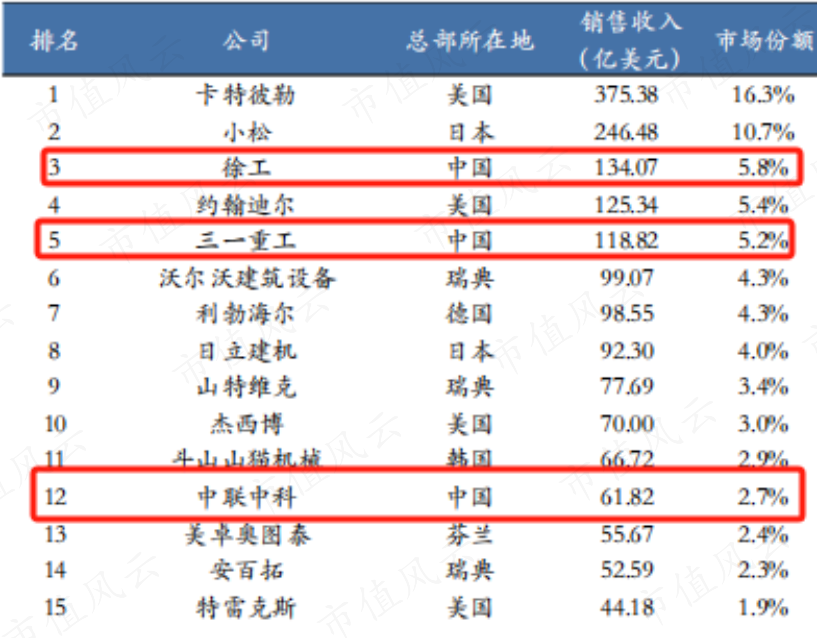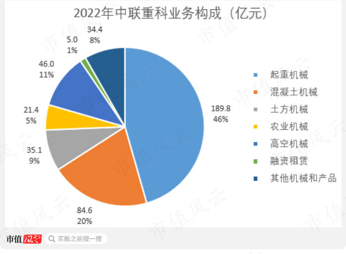 上市以来以其业务便一直以各类工程机械为主,2022年在该行业的全球市场份额约为2.7%,排在全球第12位,在国内仅次于徐工机械(000425.SZ)和三一重工(600031.SH)。