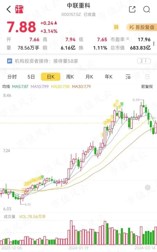 2023年末至今,中联重科已实现了近30%的上涨,尤其在2024年初,与A股整体极端低迷的表现形成鲜明对比。