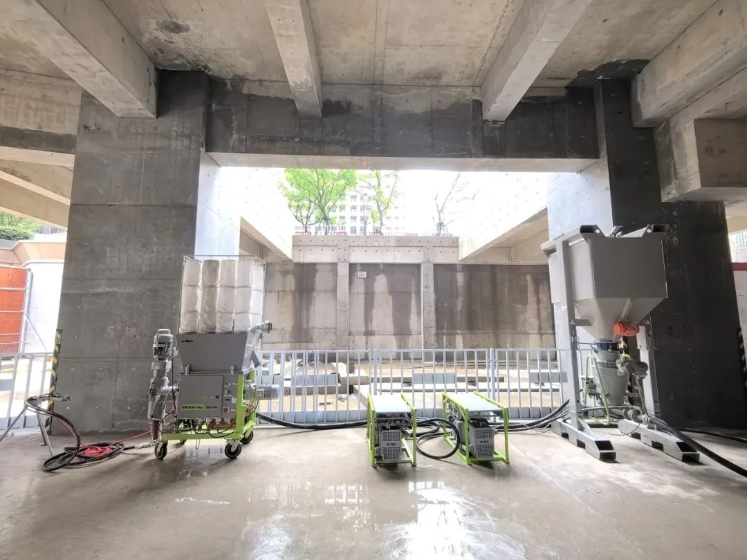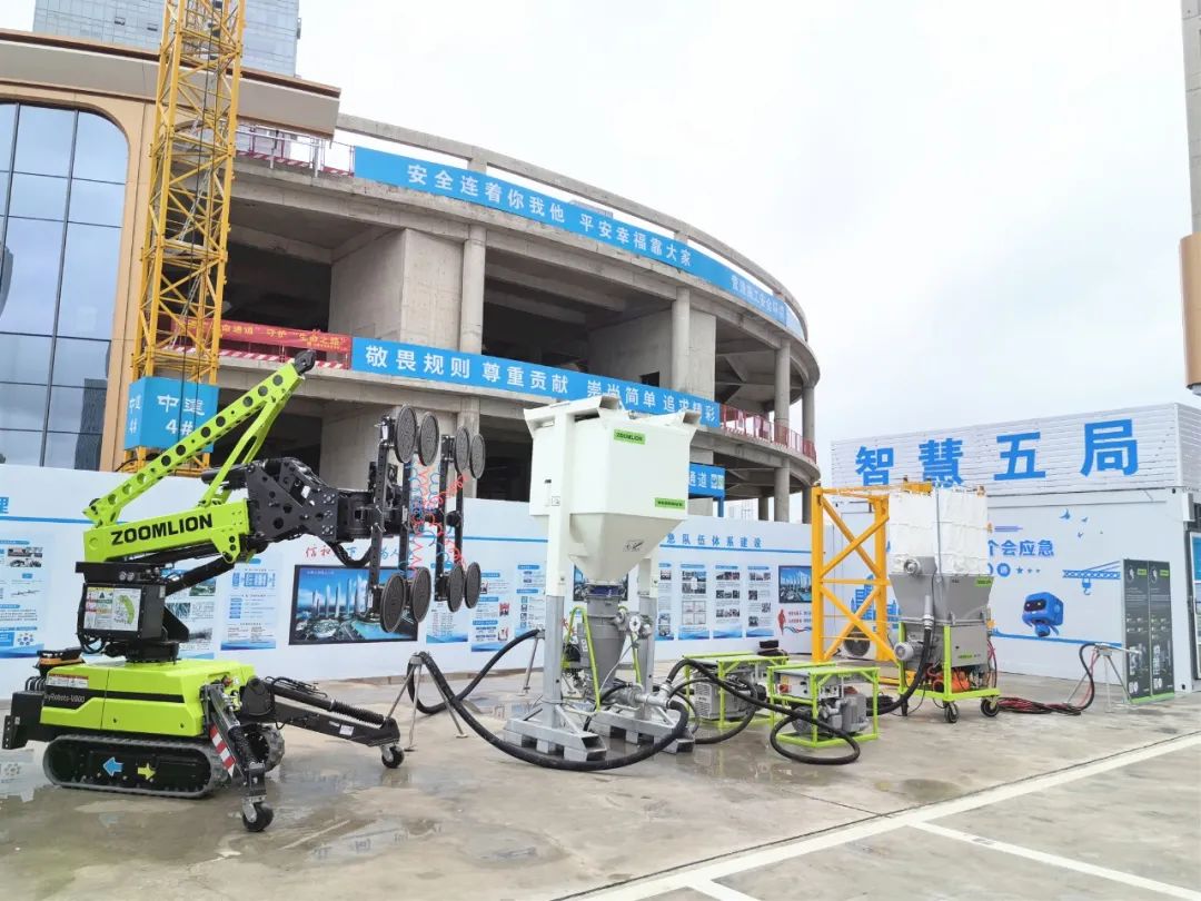 据介绍,中联重科为项目量身打造的墙面机械化施工解决方案——“可机施水泥基轻质抹灰砂浆+GDP/Duomix+机械化施工的新工艺工法”,在多环节运用传感器联动,实现了“智能化运作,一键启停”,施工现场无粉尘排放,无干粉湿浆落地,无需清洗输送管道,具有安全、高效、绿色环保等显著优势。