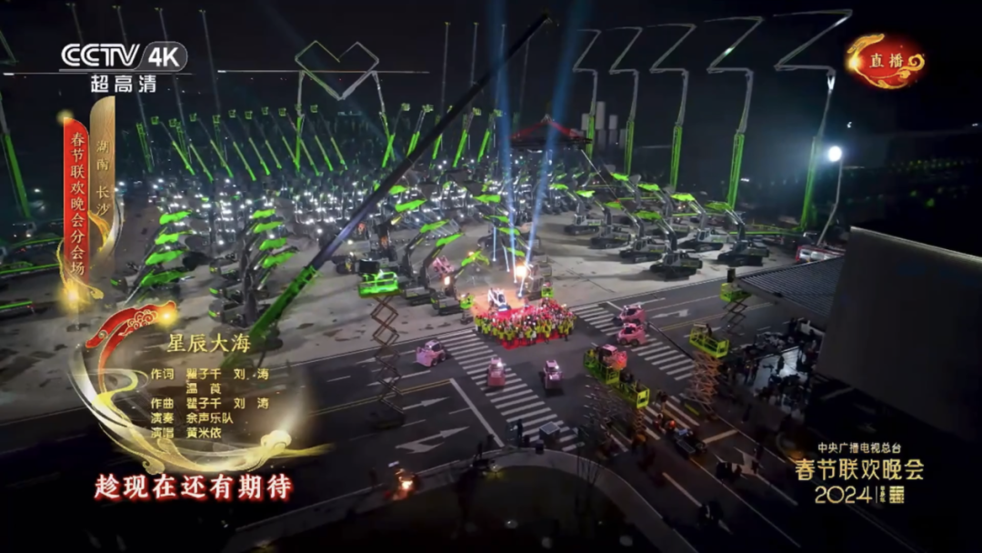 在央视龙年春晚的节目中,中联重科作为中国装备制造企业代表闪耀亮相,总数达数百台的泵车、起重机、挖掘机、高空作业平台展臂林立、依次排开,带来浓浓的科技感和机械感。高空作业平台和滑移装载机的燃情助演,以及中联重科员工一句“这里做得蛮好的嘛”和“我们造的”,让人热血澎湃。这些匠心独运的内容编创,融合科技感和艺术感的视觉呈现,让工业、机械之美与歌舞之美完美融合,彰显了中国先进装备制造企业昂扬向上、极致奋进的积极形象。