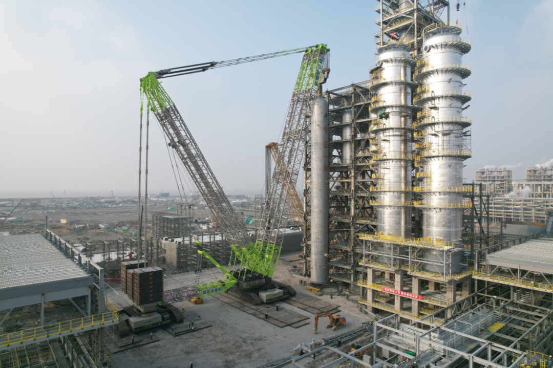 其中,中联重科ZCC89000履带起重机主要应用于石化、核电、风电吊装等领域,是全球首台能满足石化3000吨级以上浆态床吊装的履带起重机。该产品自投入市场便驰骋于各大项目施工现场,创造了“履带起重机单机吊装超3000吨的最重纪录”“单台履带起重机6天吊装近万吨的速度纪录”等多个施工纪录。