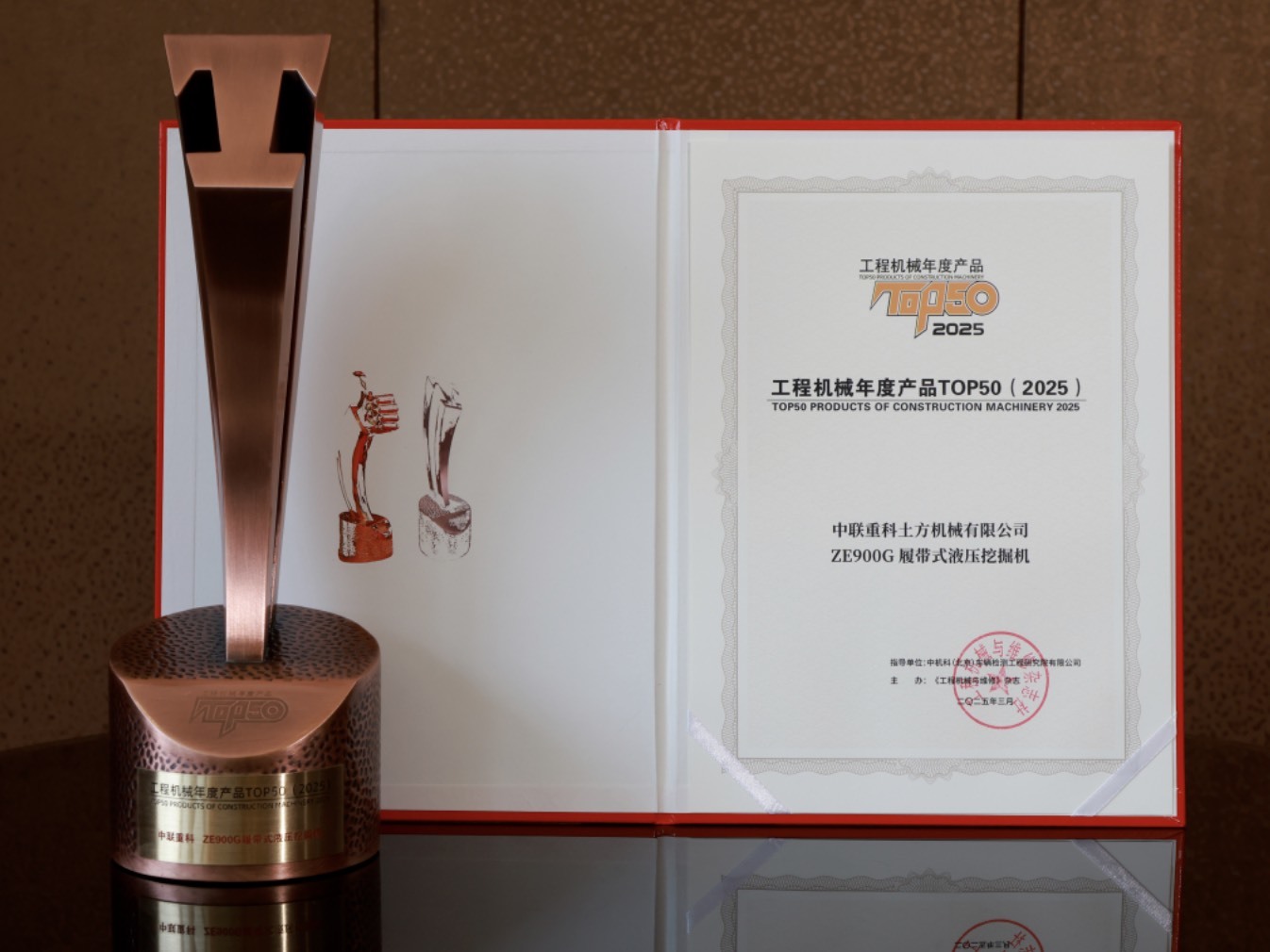 ▲获TOP50奖的中联重科ZE900G挖掘机