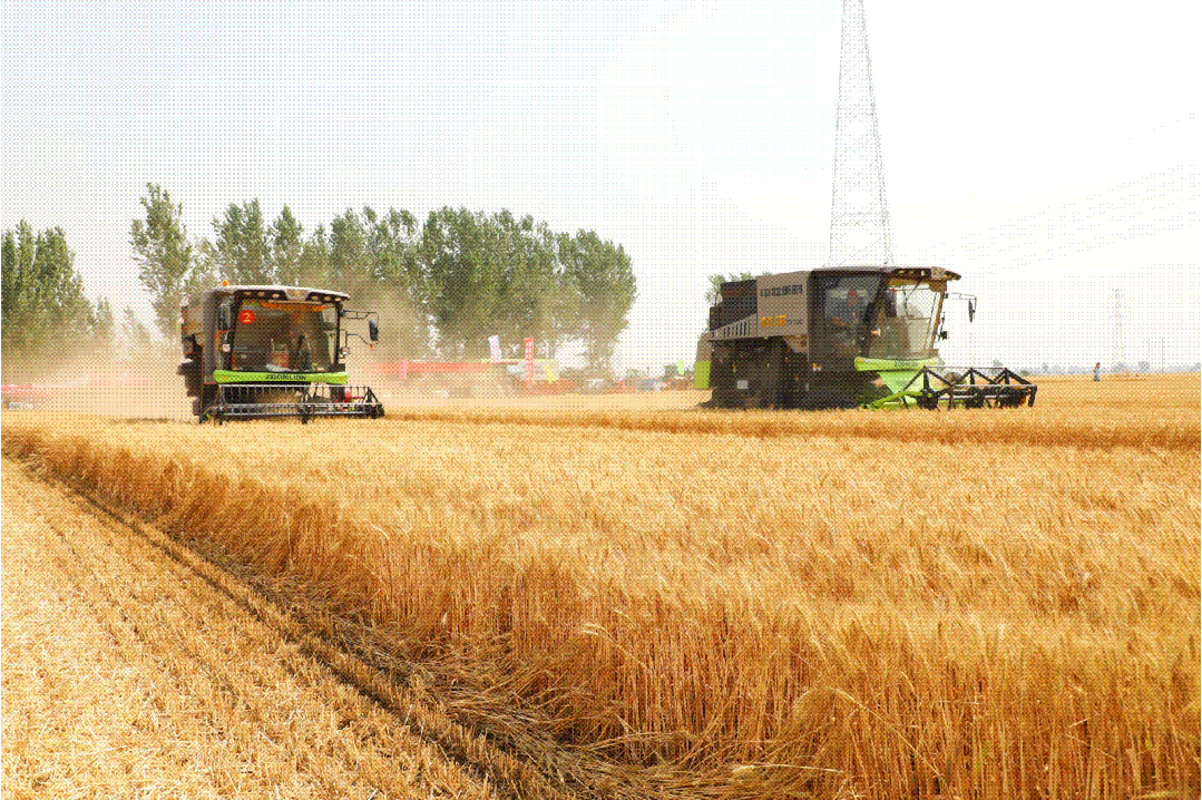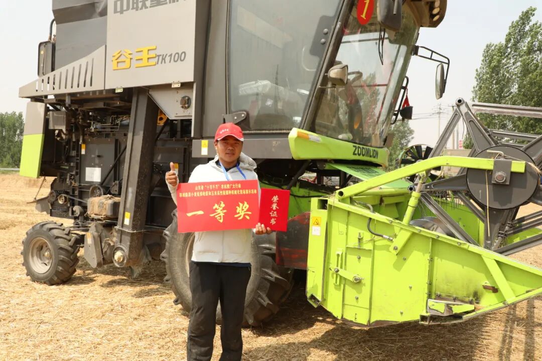 6月11日,山东省“十百千万”农机推广大行动在聊城临清市举行。现场多台小麦收割机开镰收获,标志着齐鲁大地正式进入“三夏”大规模机收时节。两名驾驶中联重科“谷王”收割机的机手在机收减损比赛环节中获得佳绩。