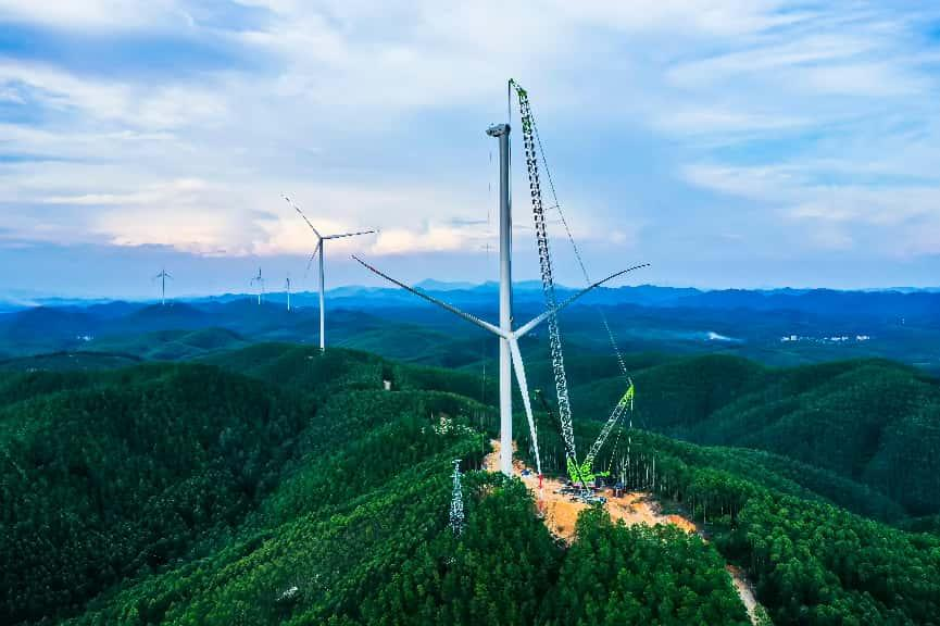 ▲中联重科ZCC9800W履带式起重机正在进行风电吊装